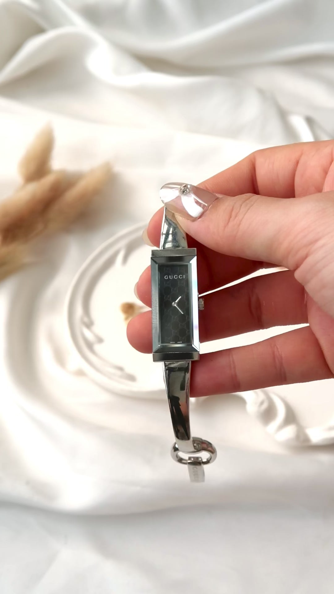 [WITH BOX] Gc. Black Patterned Rect Dial Silver Bangle Watch